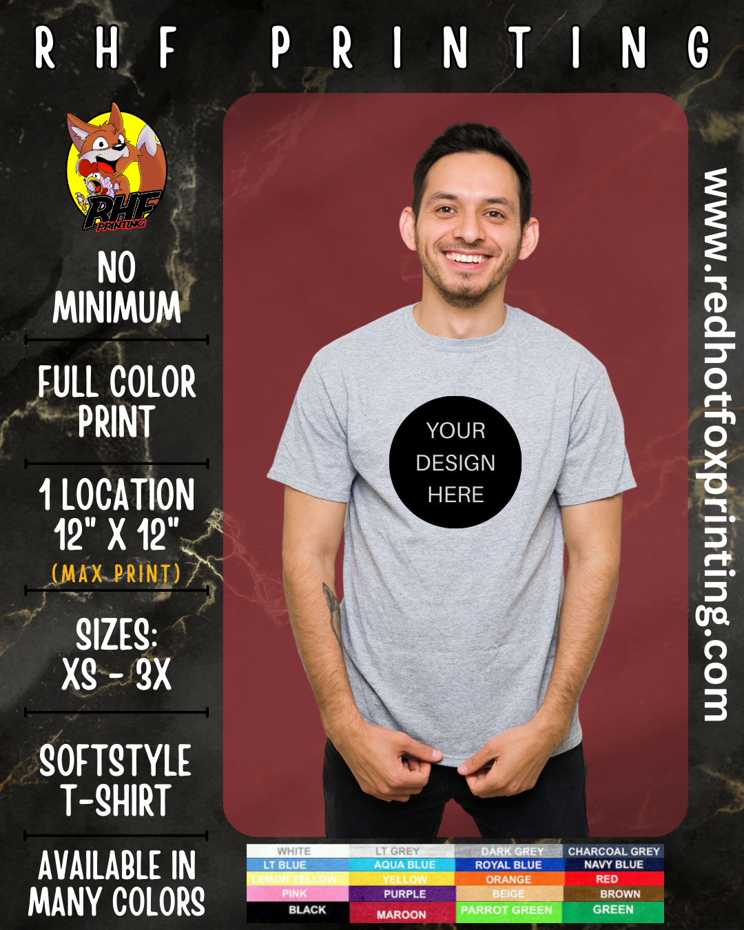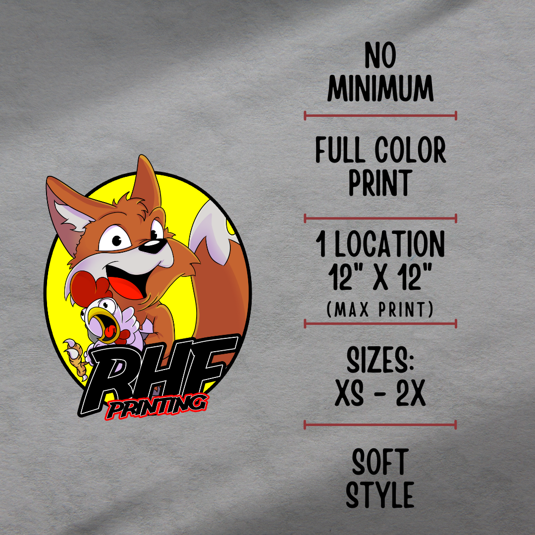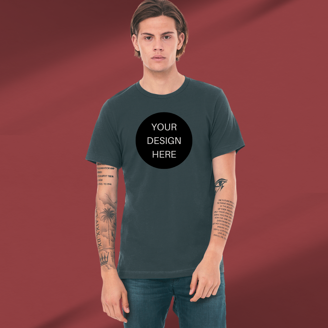 Hey there! Looking for custom t-shirts for your brand? We've got you covered with our soft-style fabric and the option to upload your own design. Let's create something unique together!