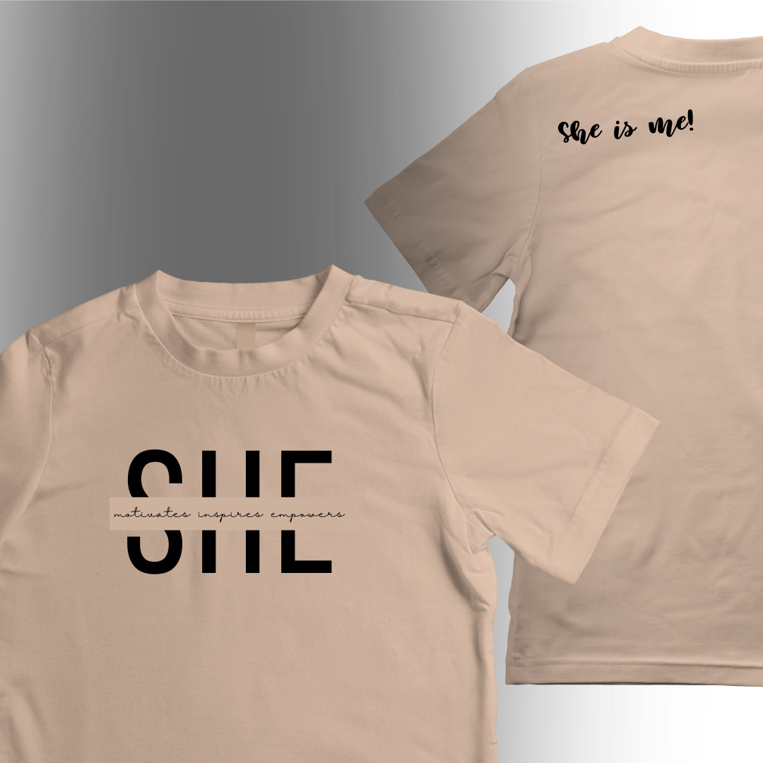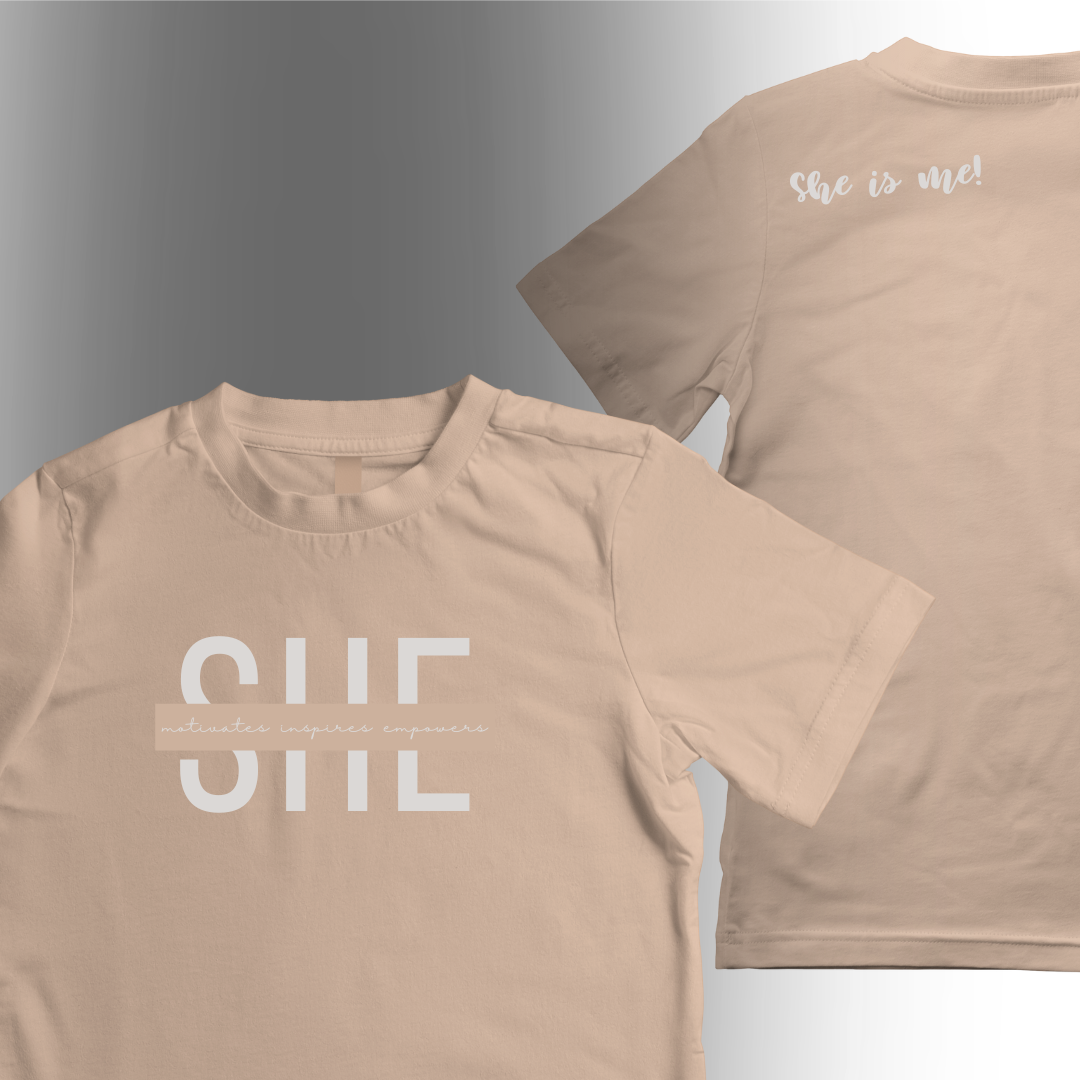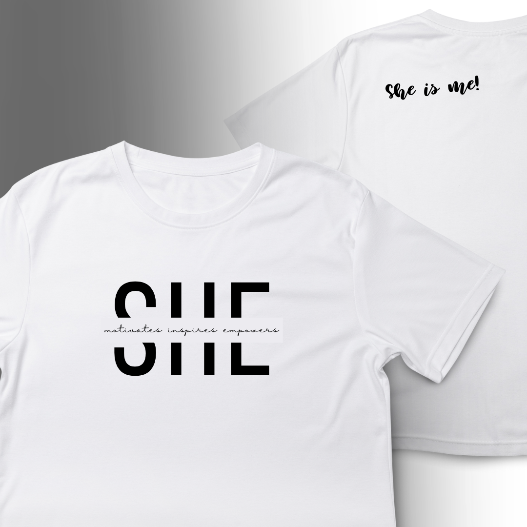 Our SHE Is Me t-shirt is the perfect choice to show your confidence. Its short sleeve offers optimal breathability and comfort without sacrificing style. Plus, its unique design makes it a standout accessory.